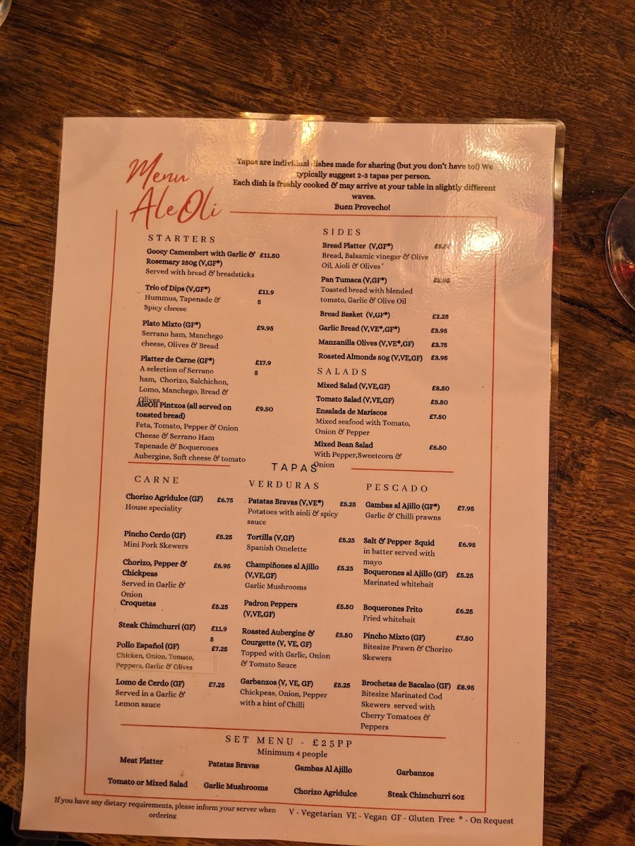 Welcome to AleOli y Tu, a delightful tapas restaurant nestled in the heart of Shrewsbury. This charming eatery invites you to embark on a culinary journey with its enticing menu featuring an array of flavorful dishes. Start your meal with the Trio of Dips, or indulge in a Plato Mixto that showcases the essence of Spanish cuisine at just £9.95.